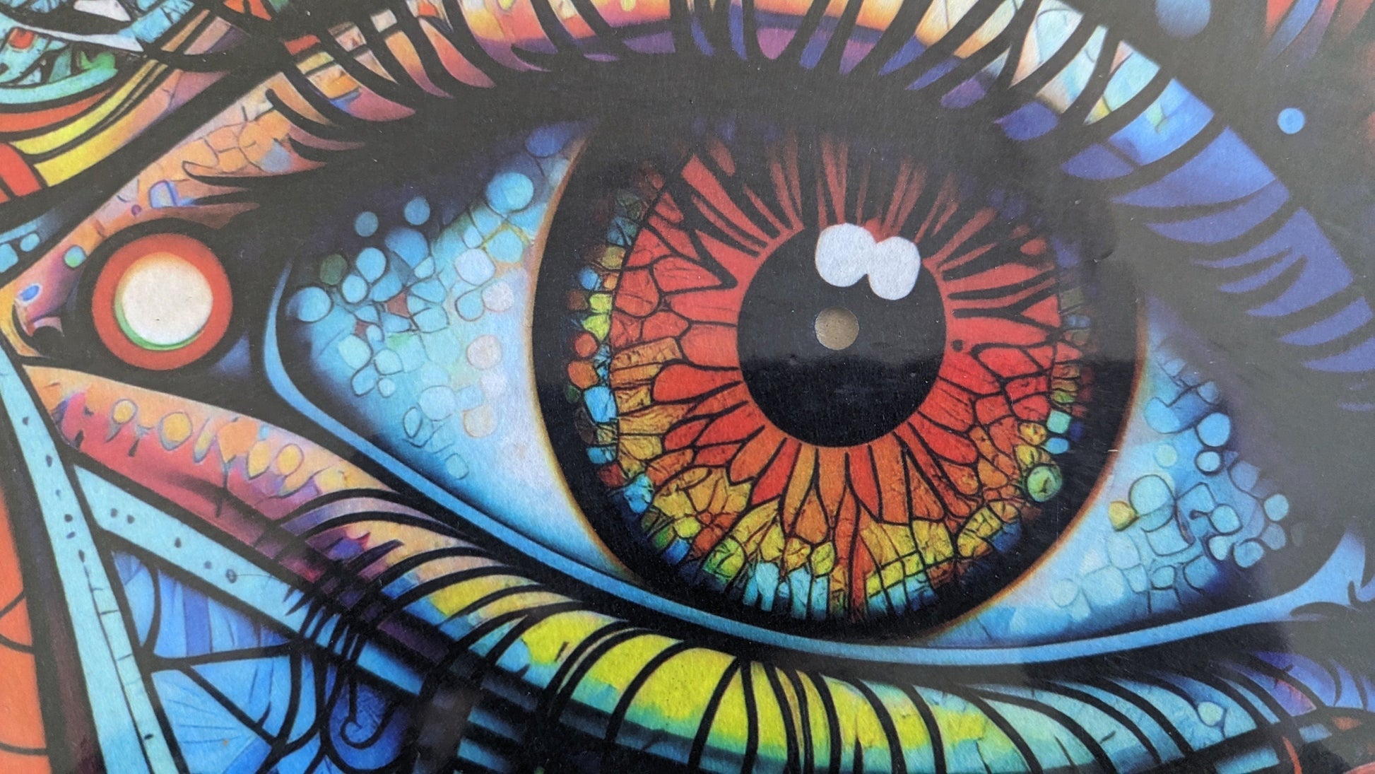 A handmade sublimated felt slip mat 12" Diameter. The design is a fractal, stained glass-like trippy eye in the pyramid illuminati inspired Design created by myself. This is a unique piece, hand crafted by the designer and cant be found anywhere else online. A popular design at the shows.
