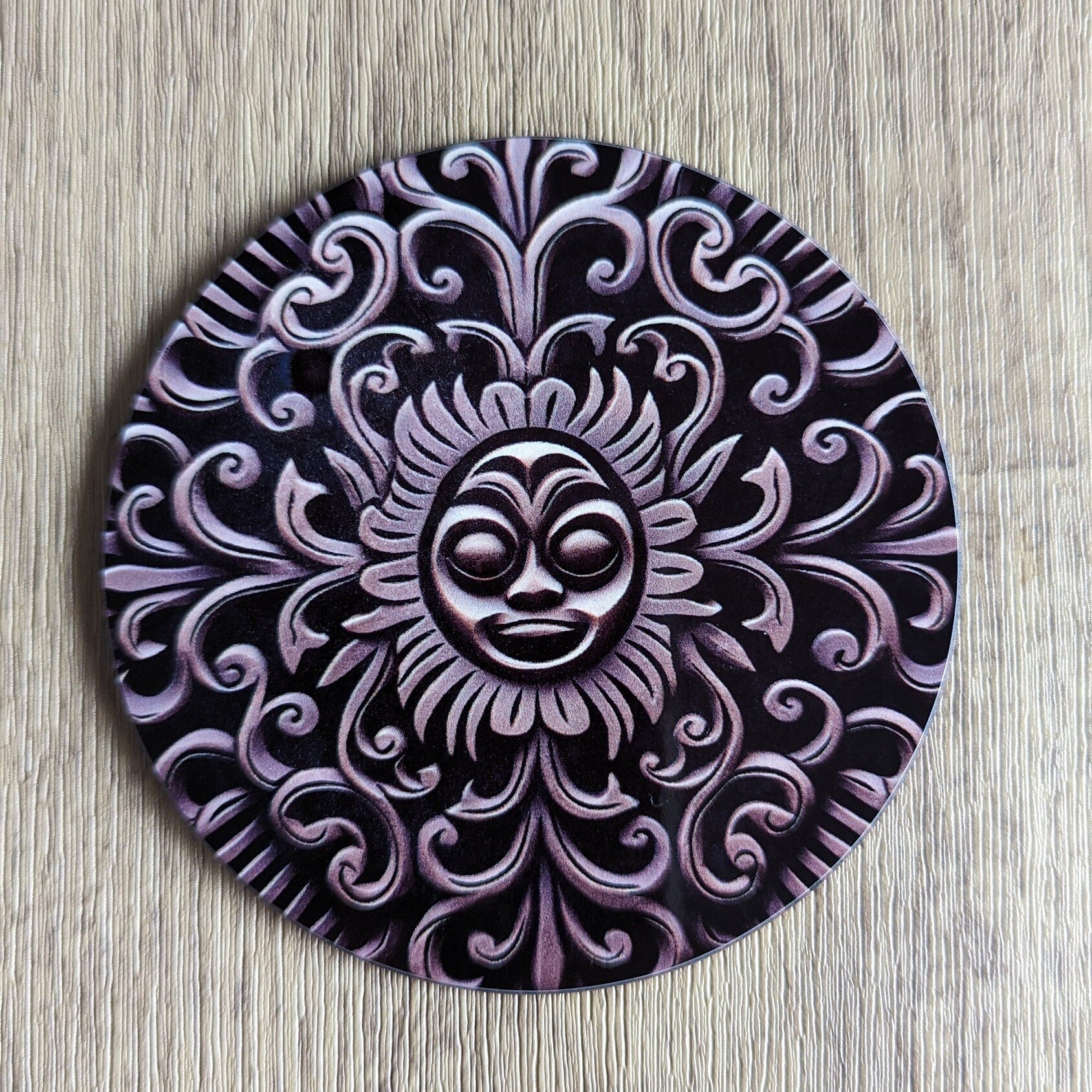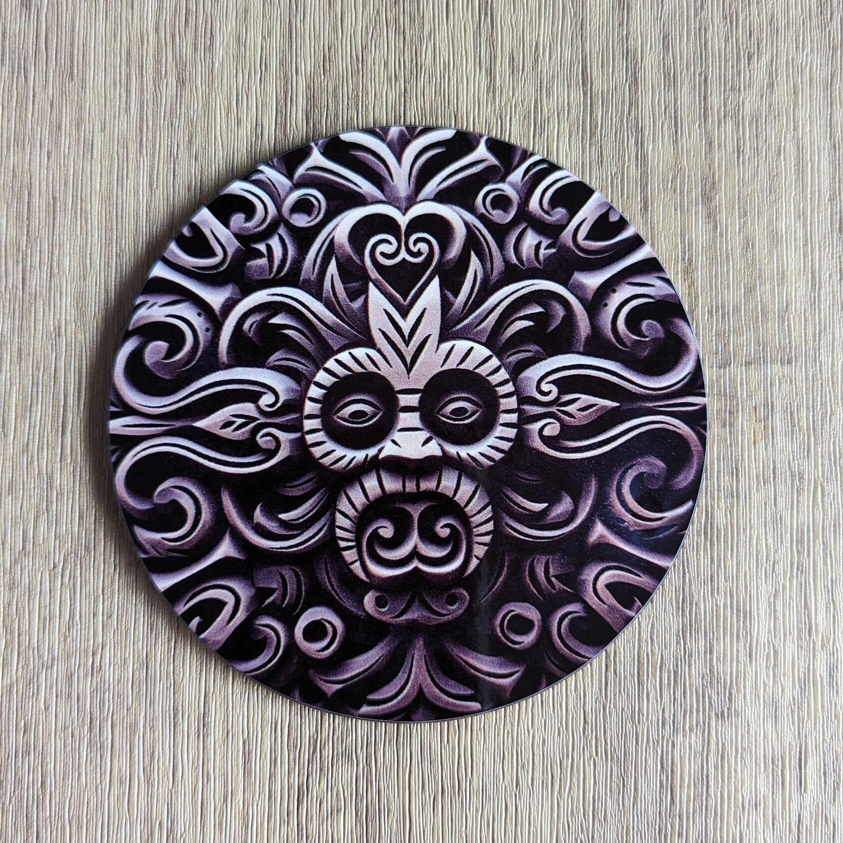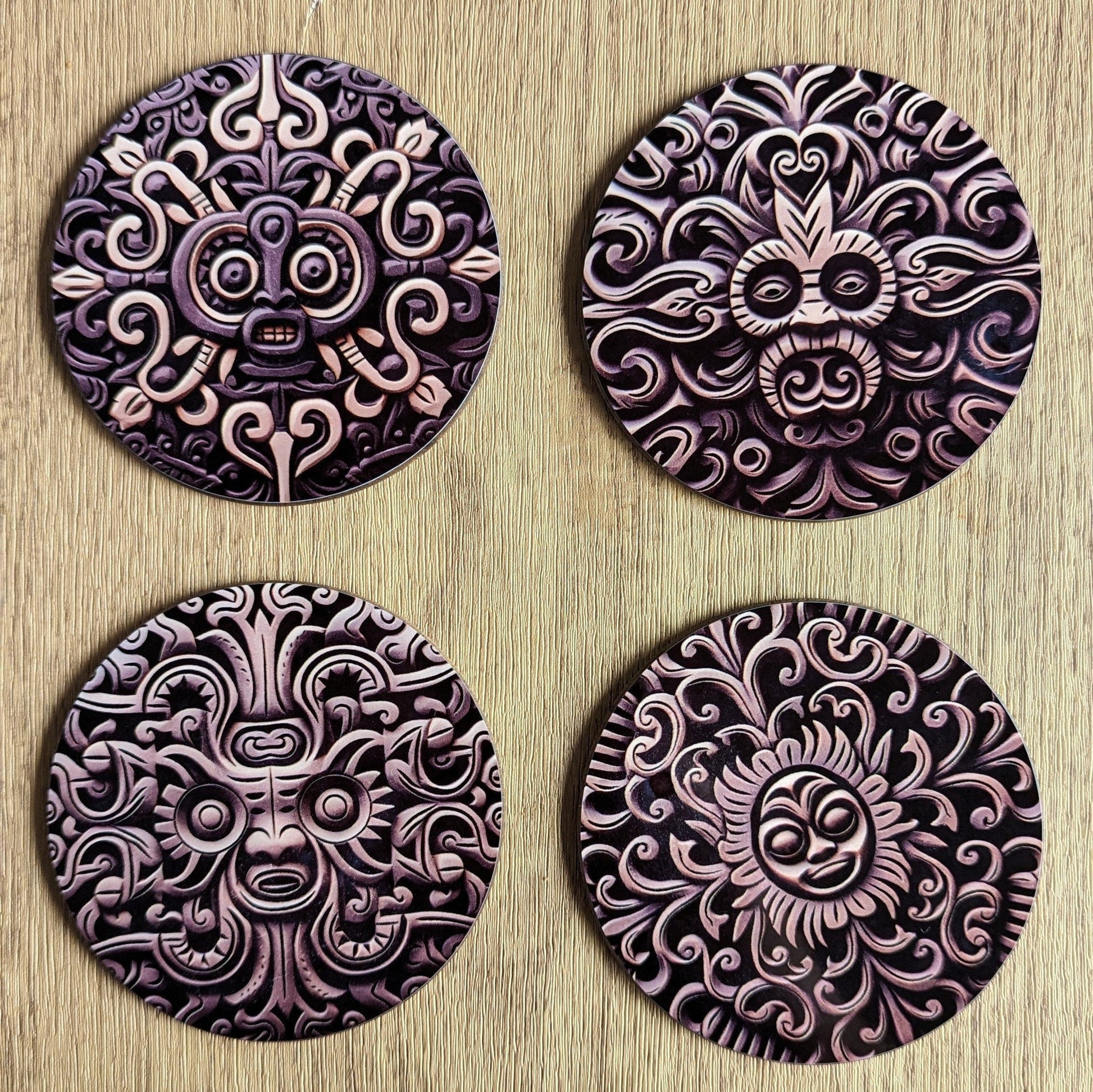 Aztec sculpture | Set of 4 ancient carved stone effect circular coasters