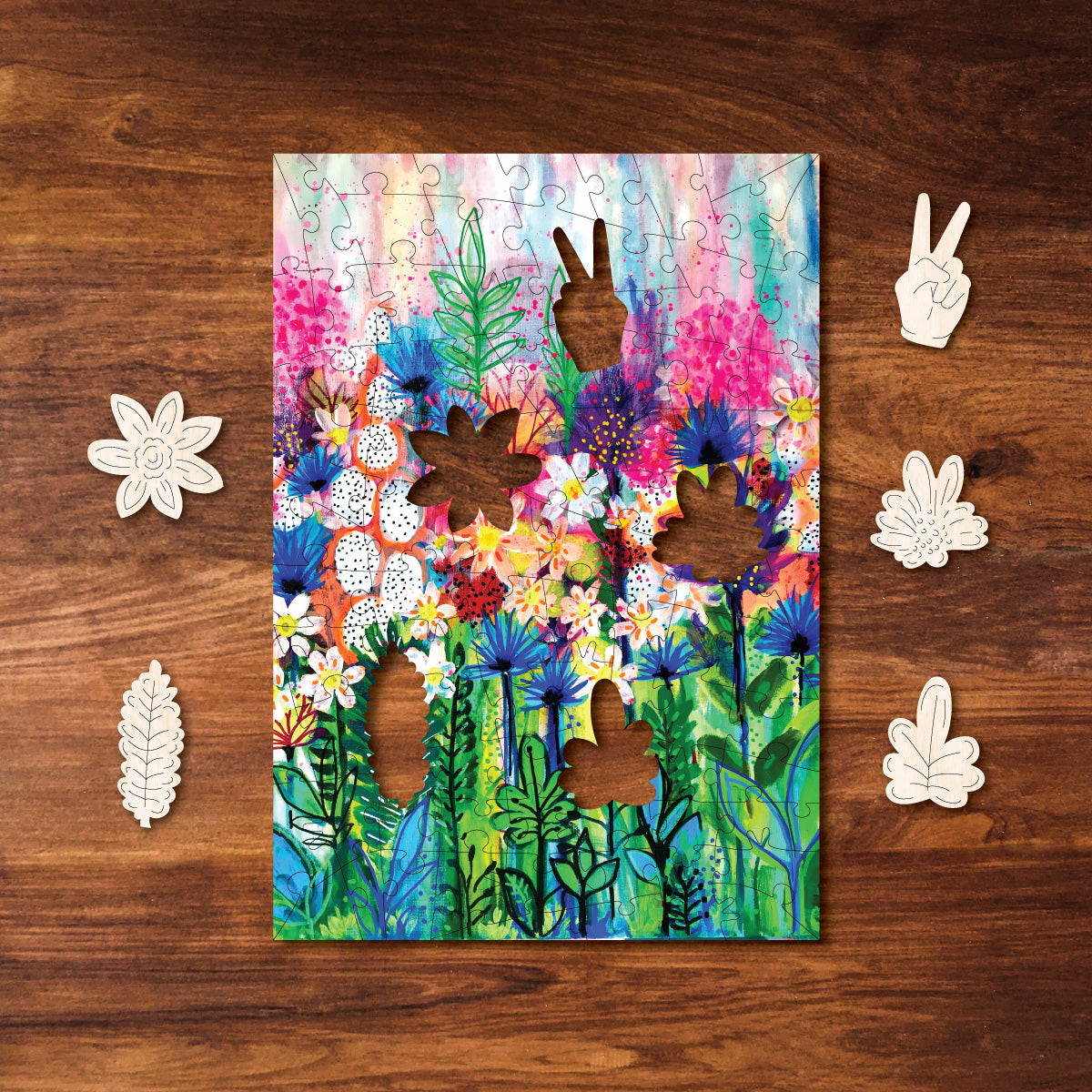 Our MINI QT puzzles are laser cut from thick, 4mm plywood and include 5 whimsies - they make a great puzzle snack!
